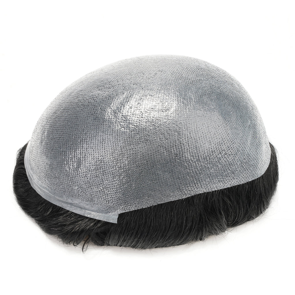 PHE-S1R Thin Skin Men's Toupee Hair Systems 0.08 mm Remy Hair Transparent Poly Skin